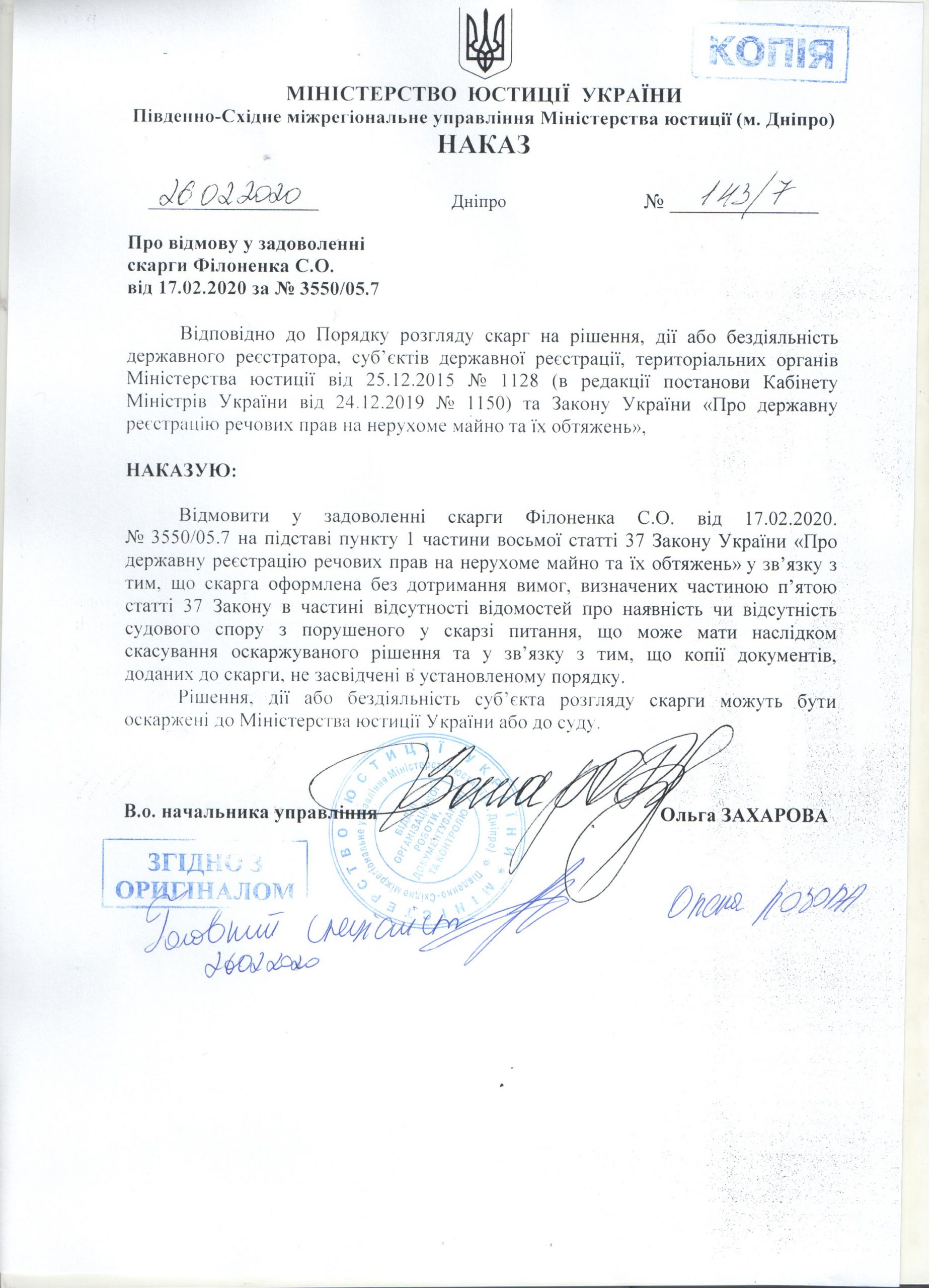 Рішення за результатом розгляду скарг у сфері державної реєстрації