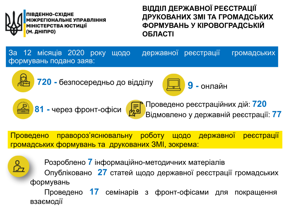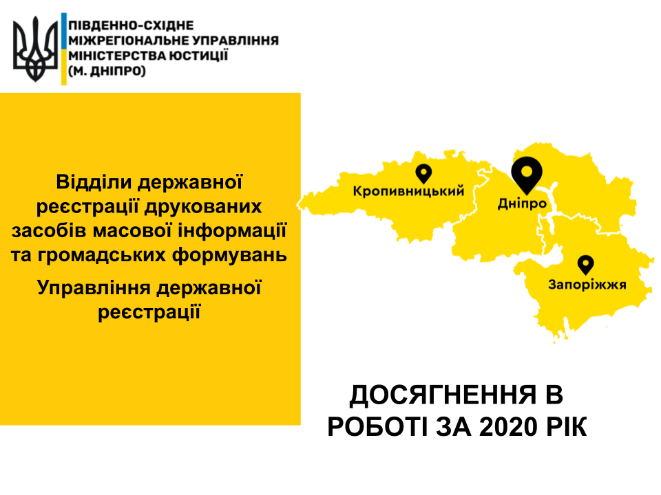 ? Основні статистичні показники роботи за 2020 рік відділами державної реєстрації ? друкованих засобів масової інформації та громадських формувань? Управління державної реєстрації у Дніпропетровській, Запорізькій та Кіровоградській областях ⬇️