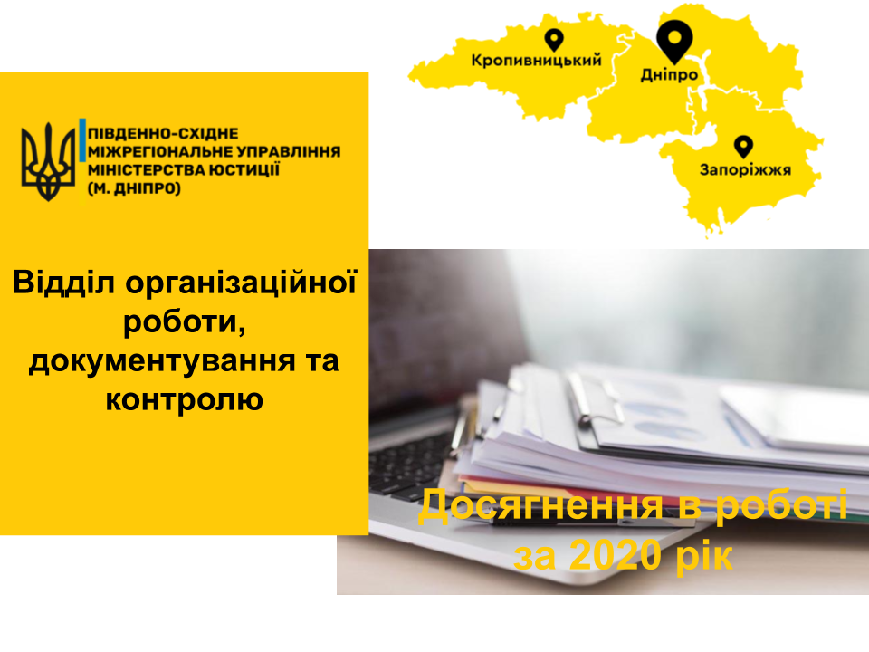 Досягнення в роботі відділу організаційної роботи, документування та контролю за 2020 рік