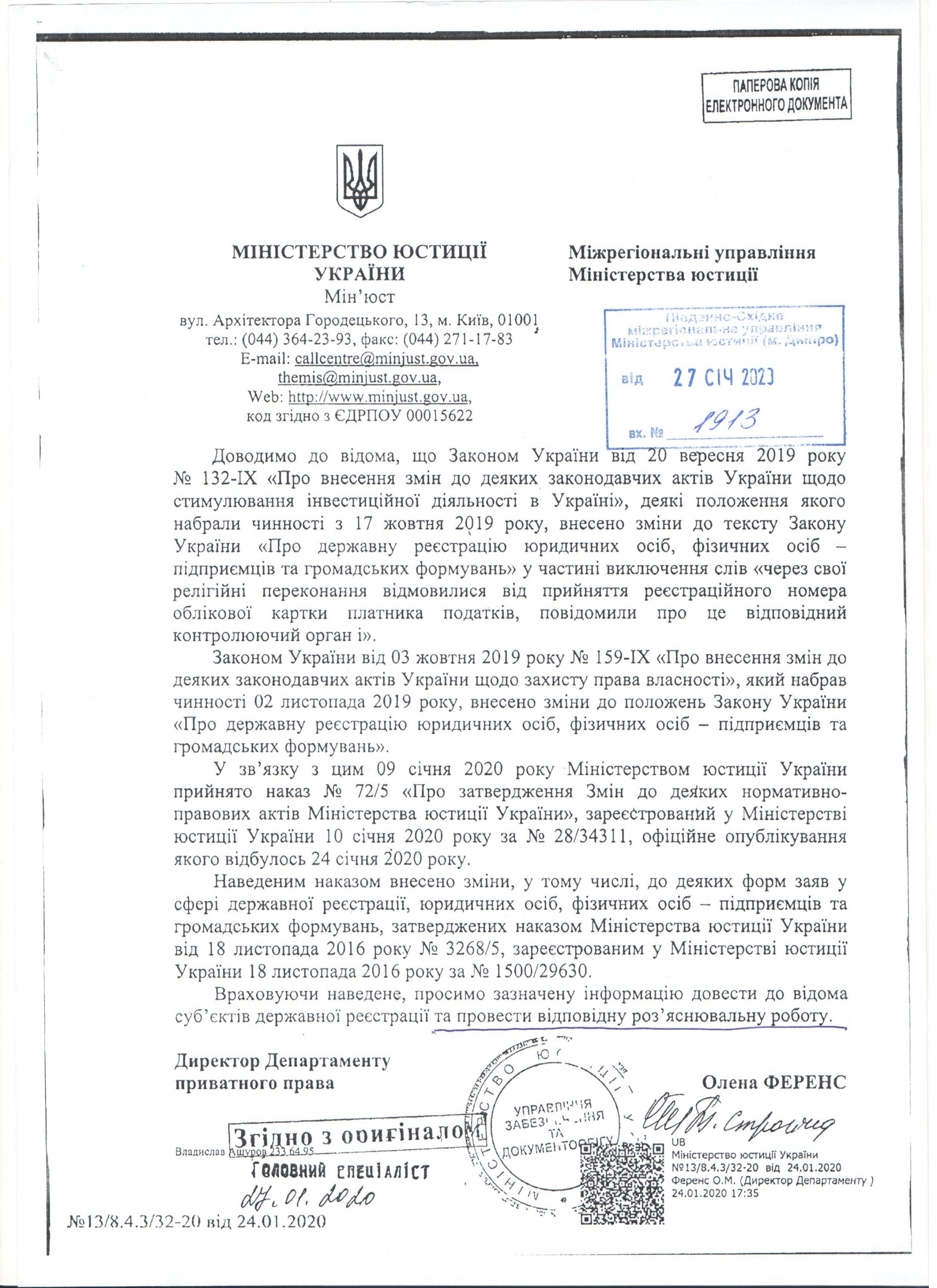 Південно-Східне міжрегіональне управління Міністерства юстиції (м. Дніпро) інформує суб’єктів державної реєстрації щодо змін, внесених до деяких форм заяв у сфері державної реєстрації юридичних осіб, фізичних осіб- підприємців та громадських формувань.