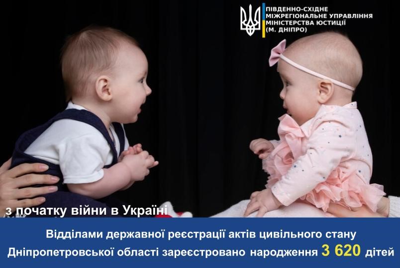 З початку війни відділами ДРАЦС Дніпропетровщини зареєстровано народження 3 620 дітей.