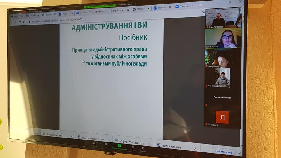 Метою онлайн заходу була презентація посібника «Адміністрування та Ви», а також обговорення стандартів Ради Європи щодо матеріальних та процесуальних принципів адміністративного права та адміністративної процедури в контексті захисту приватних осіб у відносинах з органами публічної влади.