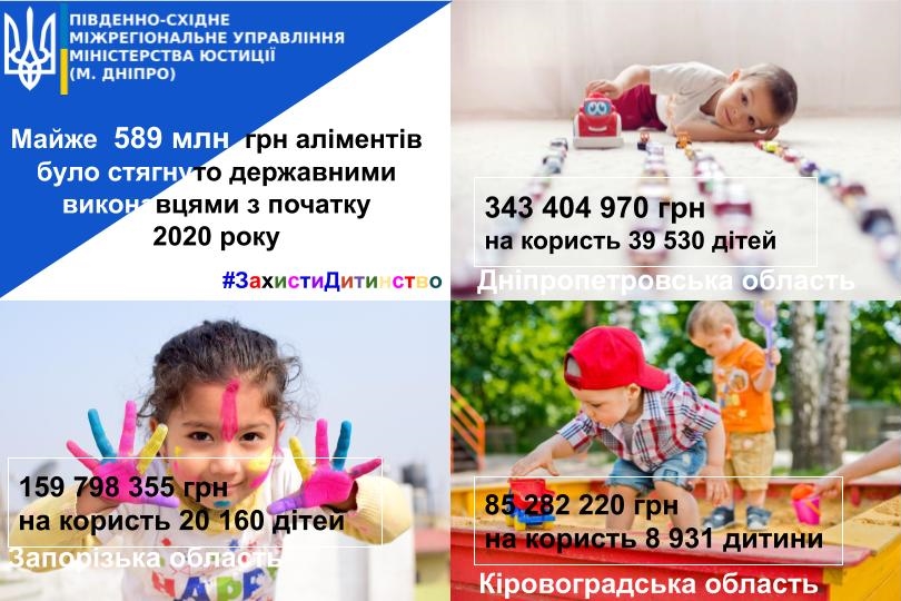 Майже 589 млн грн аліментів було стягнуто державними виконавцями з початку 2020 року