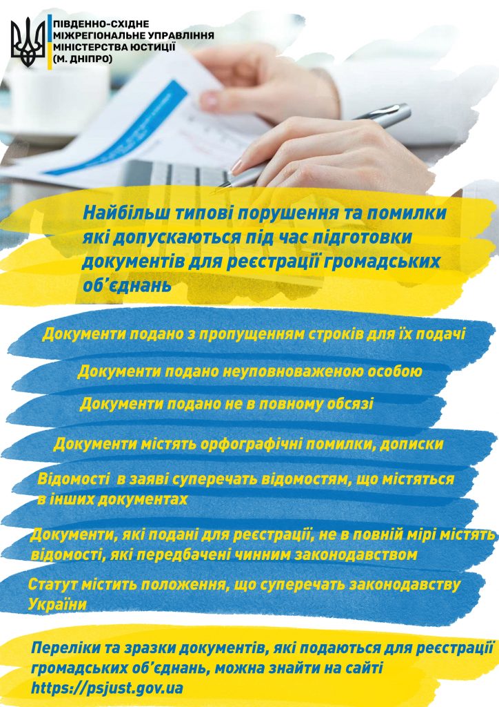 Найбільш типові порушення та помилки, які допускаються під час підготовки документів для реєстрації громадських об’єднань