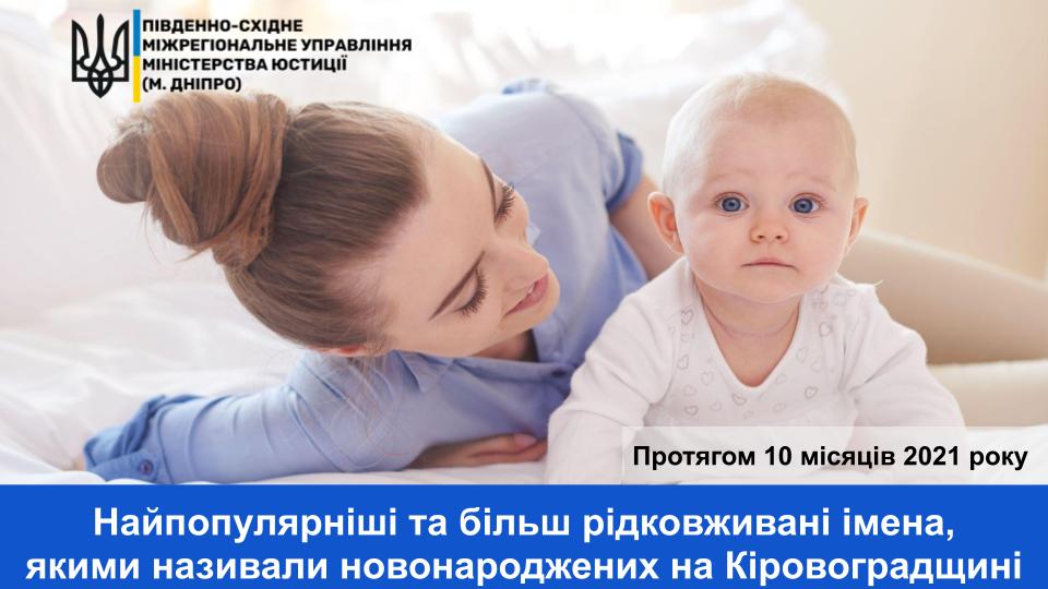 ???? Інформуємо про найпоширеніші та рідковживані імена, які надавалися дітям при державній реєстрації народження протягом 1️⃣0️⃣ місяців 2021 року на Кіровоградщині.