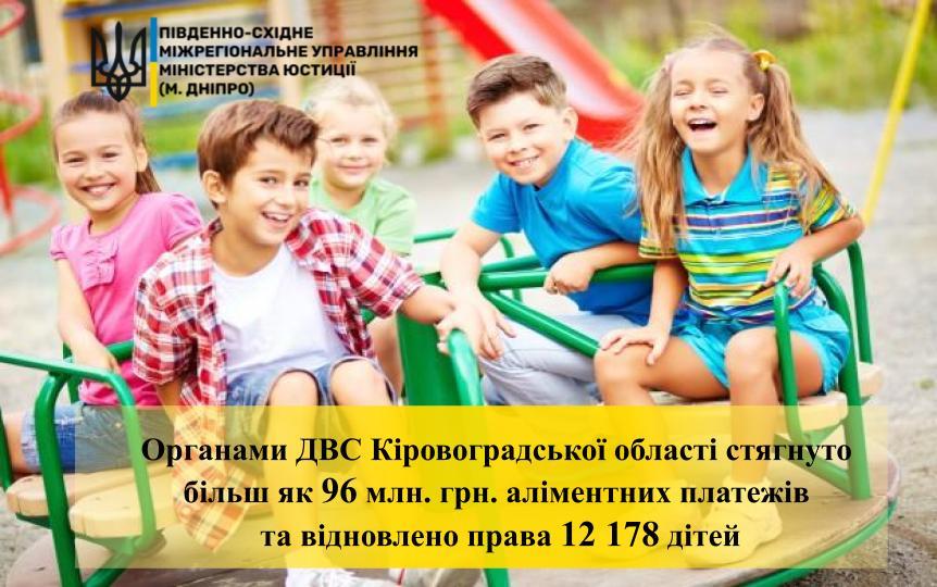 Органами ДВС Кіровоградської області стягнуто більш як 96 млн. грн. аліментних платежів та відновлено права 12 178 дітей