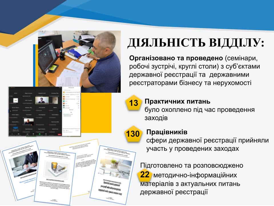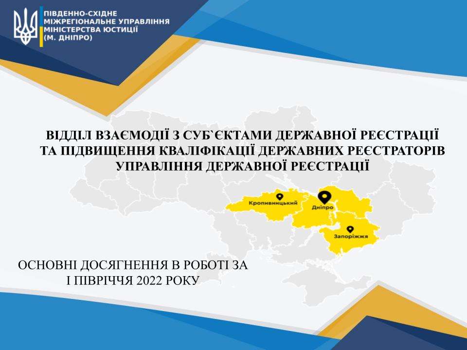 Основні досягнення відділу взаємодії з суб`єктами державної реєстрації та підвищення кваліфікації державних реєстраторів за І півріччя 2022 року