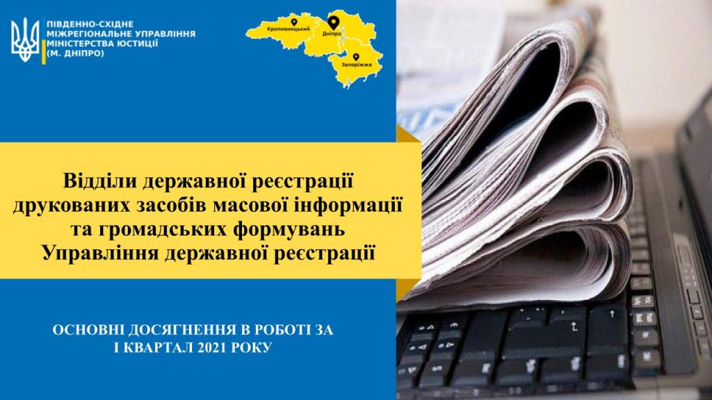Основні досягнення в роботі за І квартал 2021 року Відділів державної реєстрації друкованих засобів масової інформації та громадських формувань Управління державної реєстрації