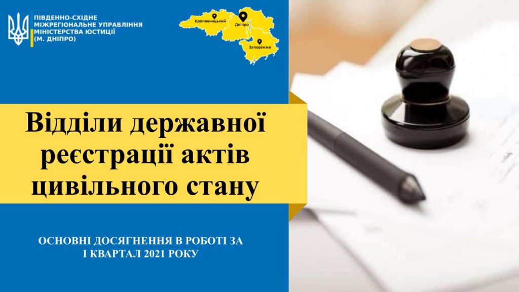 Основні досягнення в роботі за І квартал 2021 року Відділів державної реєстрації актів цивільного стану Управління державної реєстрації Південно-Східного міжрегіонального управління Міністерства юстиції (м. Дніпро)