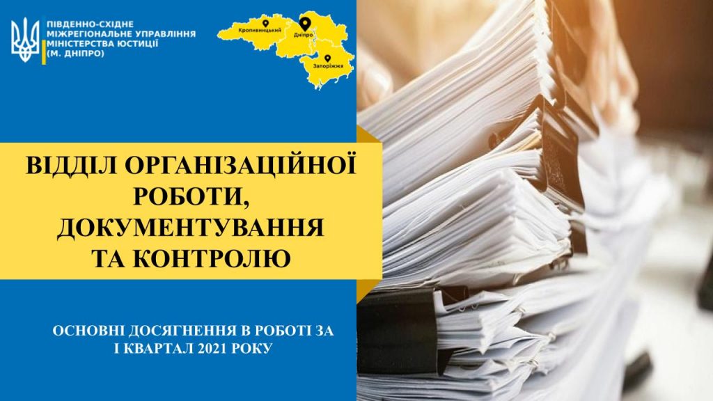 Основні досягнення в роботі за І квартал 2021 року Відділу організаційної роботи, документування та контролю
