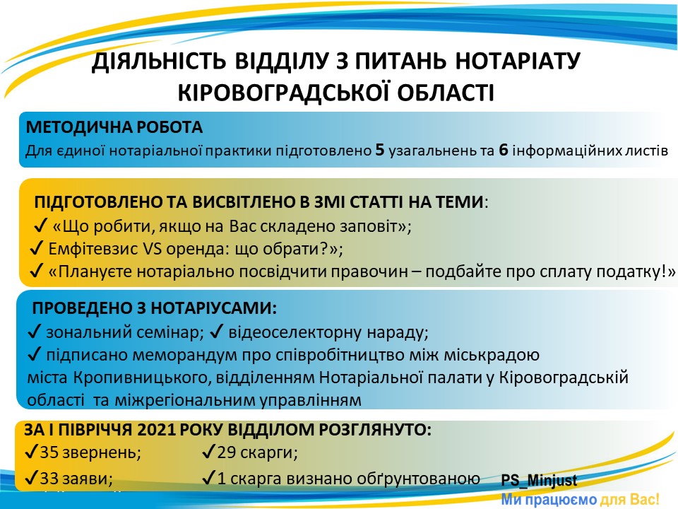 ? Основні досягнення в роботі за І півріччя 2021 року ? відділів з питань нотаріату Кіровоградської та Запорізької області Управління нотаріату⤵️