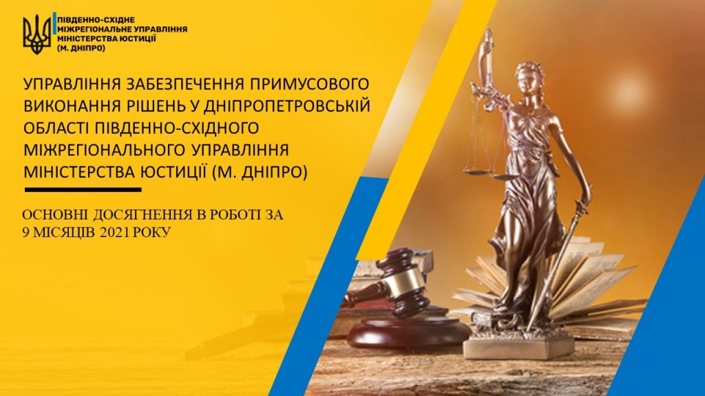 Основні досягнення в роботі Управління забезпечення примусового виконання рішень у Дніпропетровській області за 9 місяців 2021 року