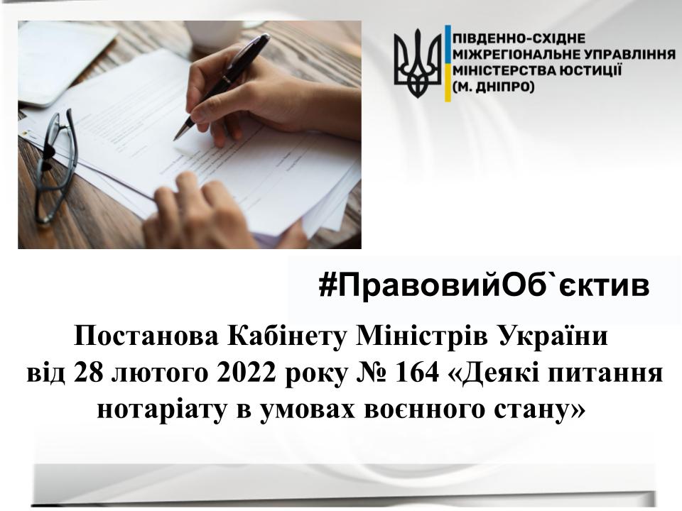 #Правовий_Обєктив: Постанова Кабінету Міністрів України від 28 лютого 2022 року № 164 «Деякі питання нотаріату в умовах воєнного стану»