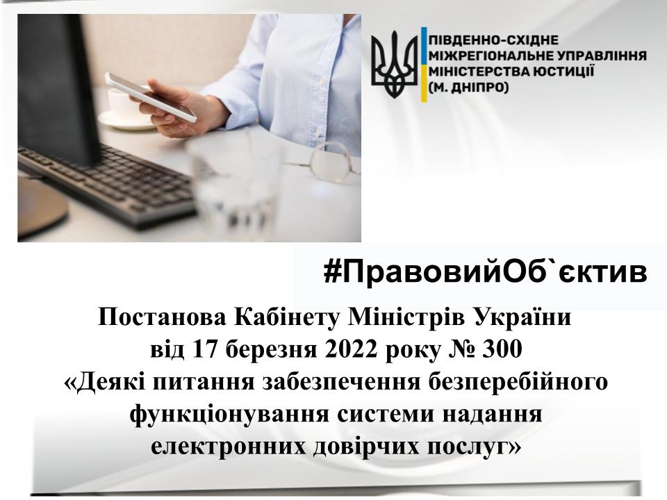 #Правовий_Обєктив: Постанова Кабінету Міністрів України від 17 березня 2022 року № 300 «Деякі питання забезпечення безперебійного функціонування системи надання електронних довірчих послуг»