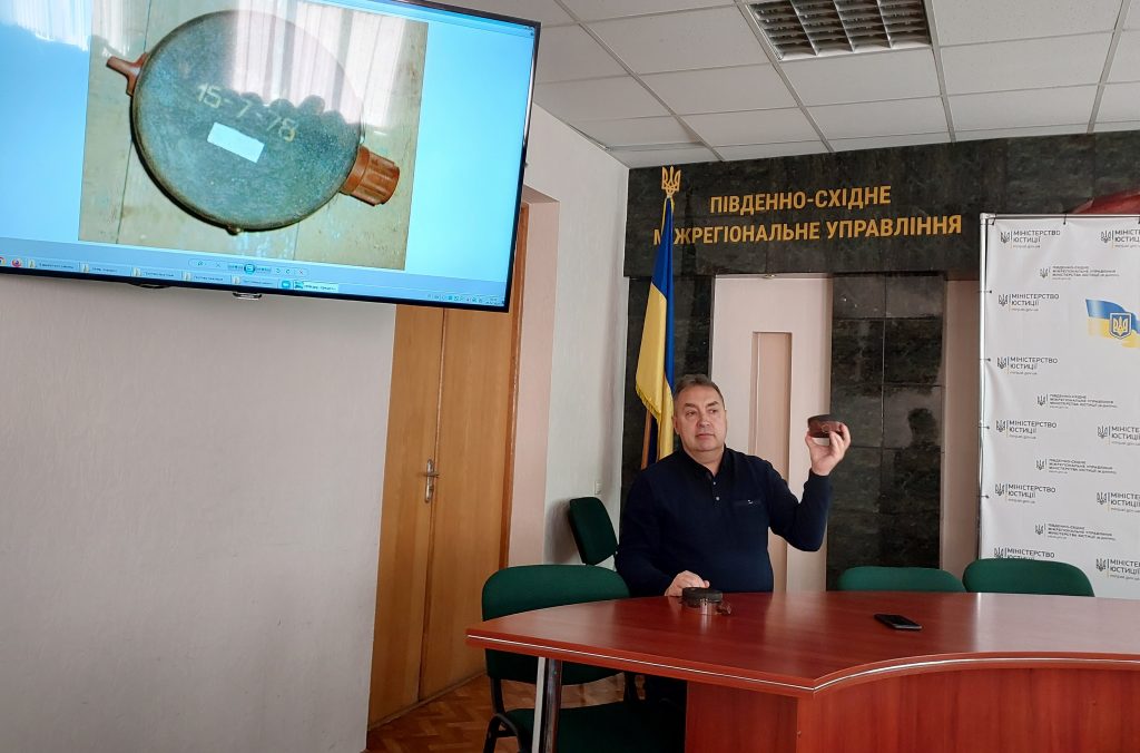 Так, сьогодні, Валерієм ГУМЕНЮКОМ було проведено відповідне заняття зі співробітниками міжрегіонального управління, під час якого присутні були ознайомлені з існуючими різновидами мін та іншими вибухонебезпечними предметами, а також правилами поводження з ними.