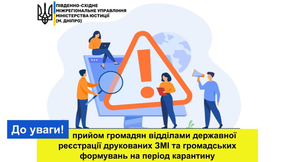 Прийом громадян відділами державної реєстрації друкованих ЗМІ та громадських формувань на період карантину