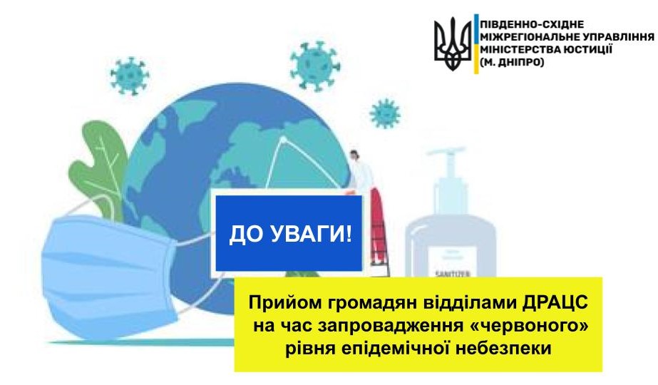 Прийом громадян відділами ДРАЦС на час запровадження «червоного» рівня епідемічної небезпеки