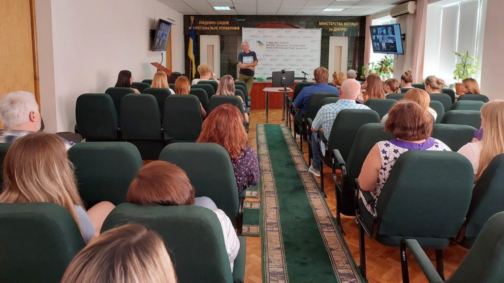 За ініціативи сектору цивільного захисту та охорони праці Південно-Східного міжрегіонального управління Міністерства юстиції (м.Дніпро) 8 серпня 2022 року зі співробітниками міжрегіонального управління провів практичне заняття фахівець 6 ДПРЗ ГУ ДСНС у Донецькій області Сергій ІСТОМІН. Темою зустрічі стали актуальні питання цивільного захисту населення під час війни, а саме: