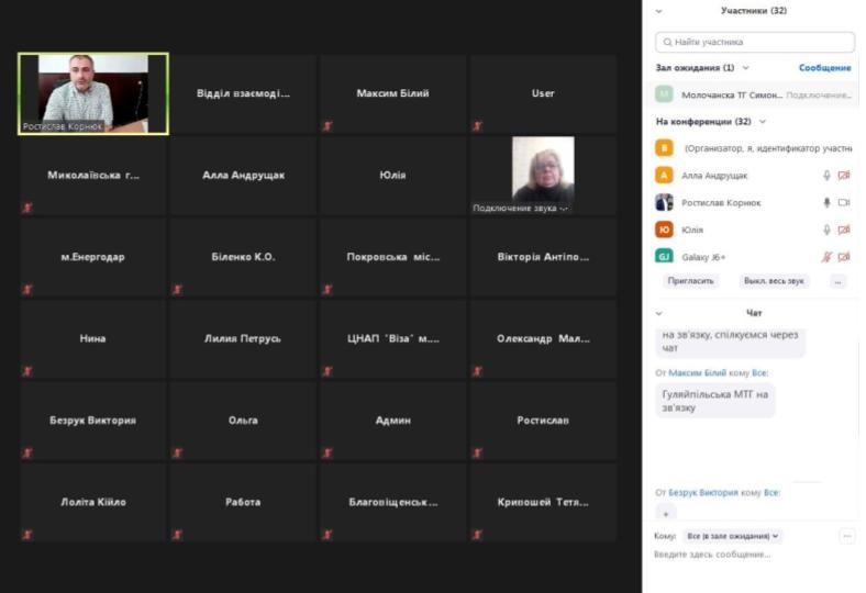 Проведено робочу зустріч у форматі Zoom-конференції з державними реєстраторами юридичних осіб та фізичних осіб – підприємців Дніпропетровської, Запорізької та Кіровоградської областей
