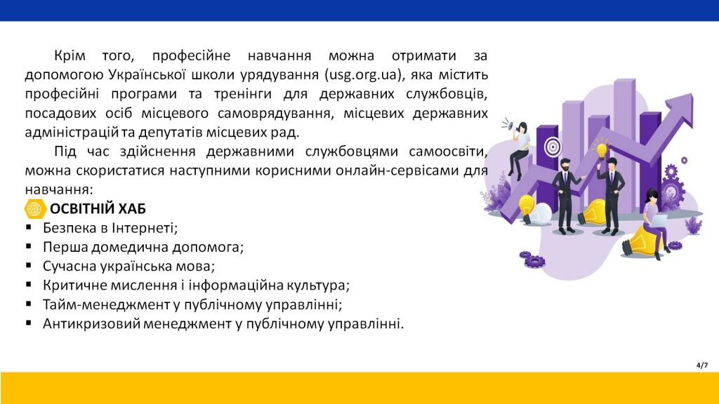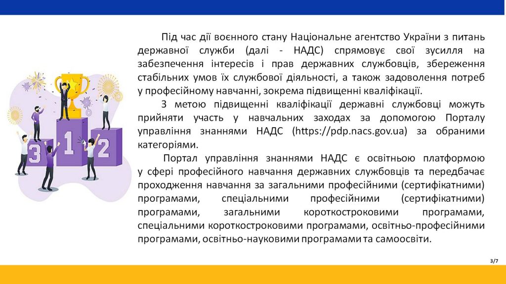 Так, з метою підвищенні кваліфікації державні службовці можуть прийняти участь у навчальних заходах за допомогою Порталу управління знаннями НАДС за посиланням ➡️ http://pdp.nacs.gov.ua та Української школи урядування за посиланням ➡️usg.org.ua.