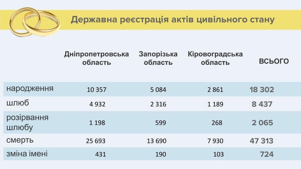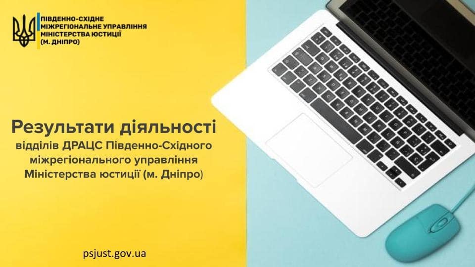 Результати діяльності відділів ДРАЦС Південно-Східного міжрегіонального управління Міністерства юстиції (м. Дніпро)