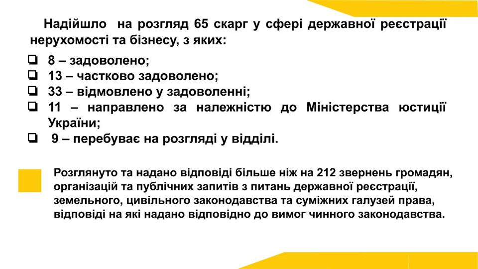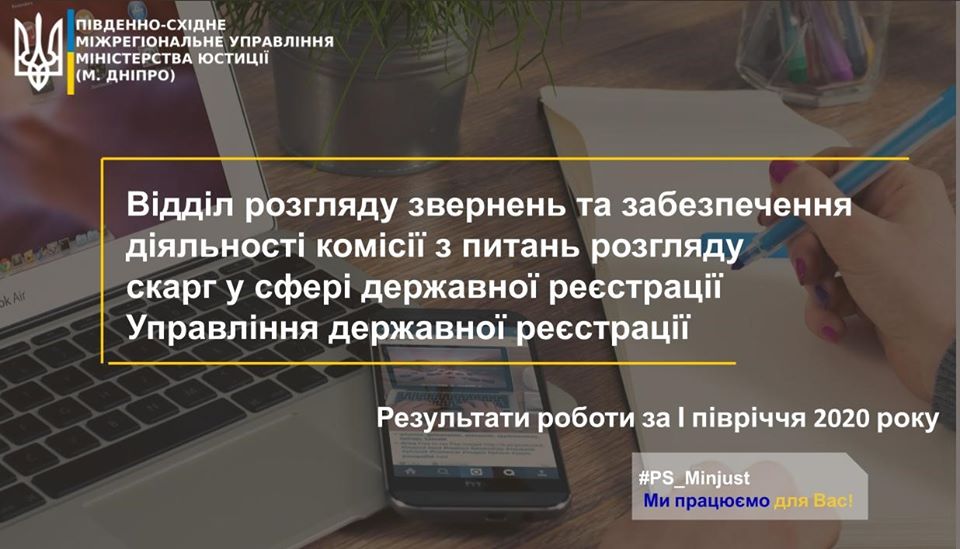 Результати роботи за І півріччя відділу розгляду звернень та забезпечення діяльності комісії з розгляду скарг у сфері державної реєстрації