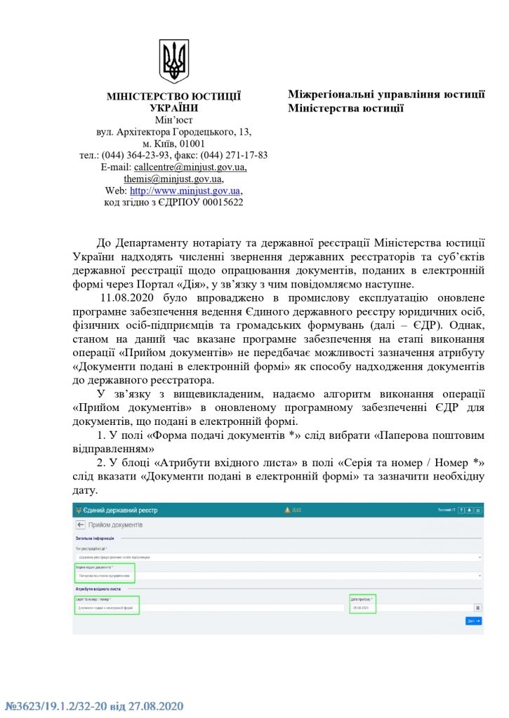 ? Листом Міністерства юстиції України надається роз’яснення алгоритму виконання операції «Прийом документів» в оновленому програмному забезпеченні ЄДР для документів, що подані в електроній формі ⤵️