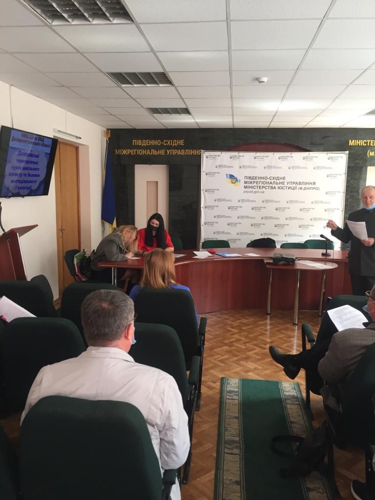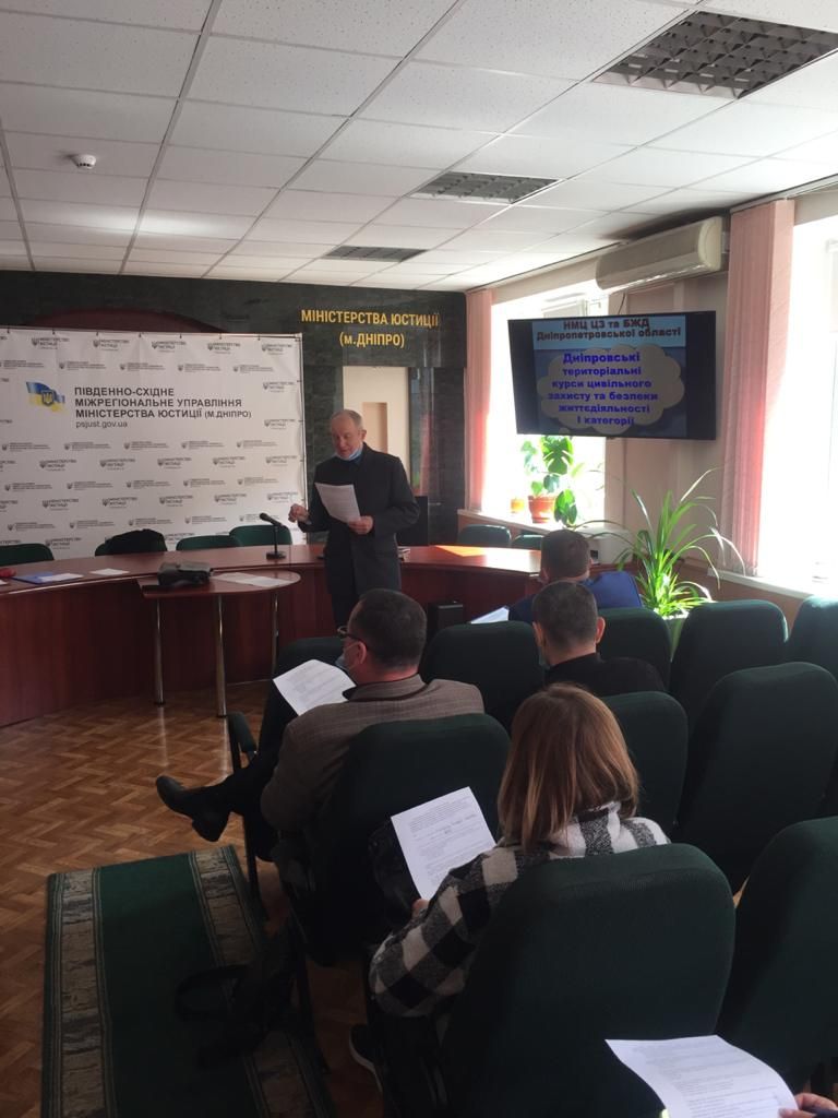 Сьогодні, 26.04.2021, Сектором з питань цивільного захисту та охорони праці Південно-Східного міжрегіонального управління Міністерства юстиції (м. Дніпро) за участю представника Навчально-методичного центру цивільного захисту та безпеки життєдіяльності Дніпропетровської області Валерія Крицького розпочато функціональне навчання керівного складу, діяльність яких пов’язана з організацією із здійсненням заходів з питань цивільного захисту.