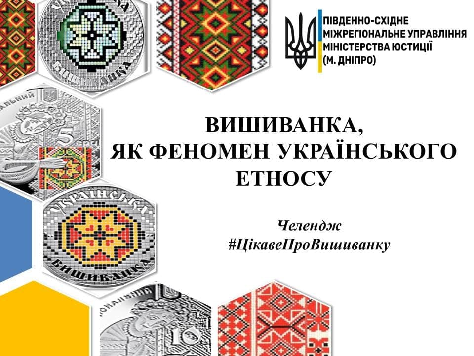Тож, нагадуючи Вам про наш челендж «#ЦікавеПроВишиванку», звертаємо Вашу увагу, що 20.05.2021 року з 09:00 до 12:00 на офіційній сторінці Південно – Східного міжрегіонального управління Міністерства юстиції (м. Дніпро) у Фейсбук буде відкрито доступ до онлайн тестування. Переможцем буде особа, яка першою відповість на всі питання онлайн тесту вірно.
