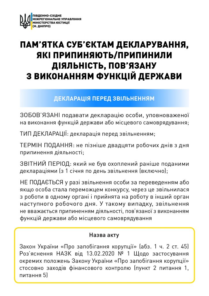 Інфографіка для суб’єктів декларування, які припиняють або припинили свою діяльність пов’язану з виконанням державних функцій