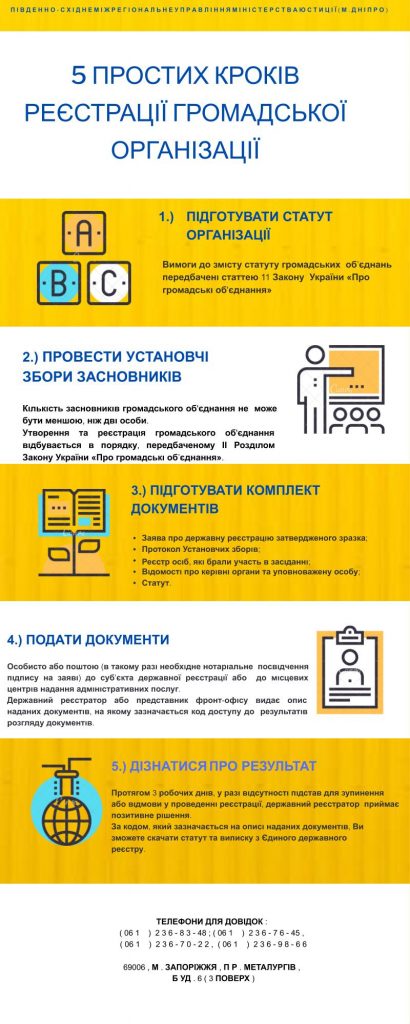 ? До вашої уваги інфографіка, яка допоможе зареєструвати громадську організацію лише за 5️⃣ простих кроків