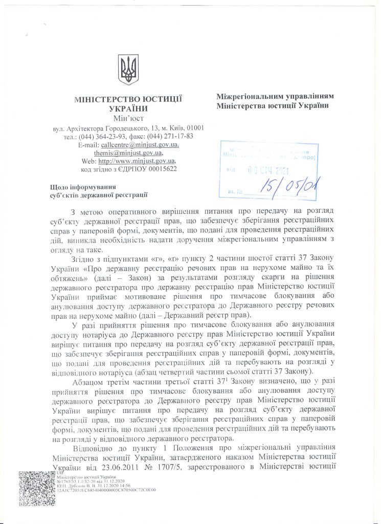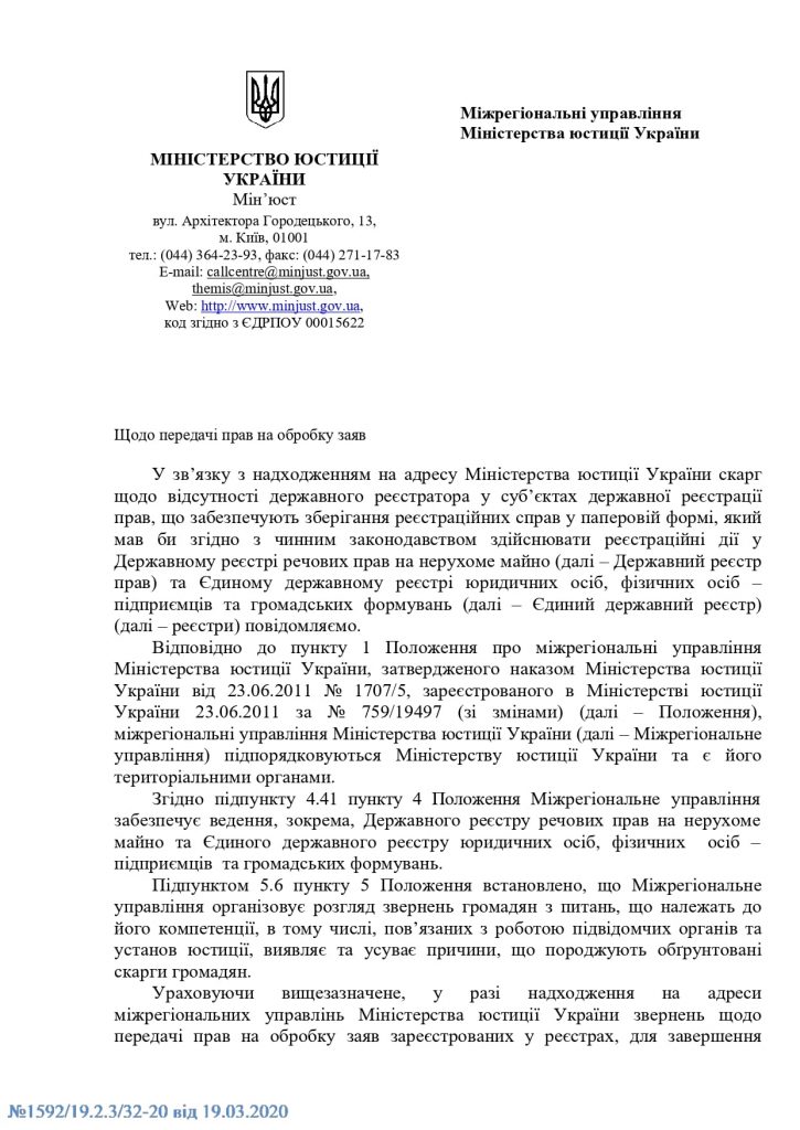 ❗️Про оперативне вирішення питання щодо передачі на ? розгляд суб’єкту державної реєстрації прав, що забезпечує зберігання реєстраційних справ у ?паперовій формі, документів, що подані для проведення реєстраційних дій, у ? листі Міністерства юстиції України від 31.12.2020 № 1765/33.1.1/32-20⬇️