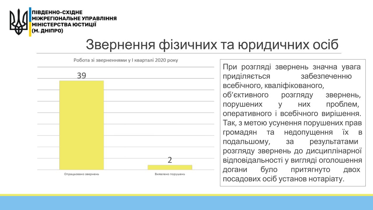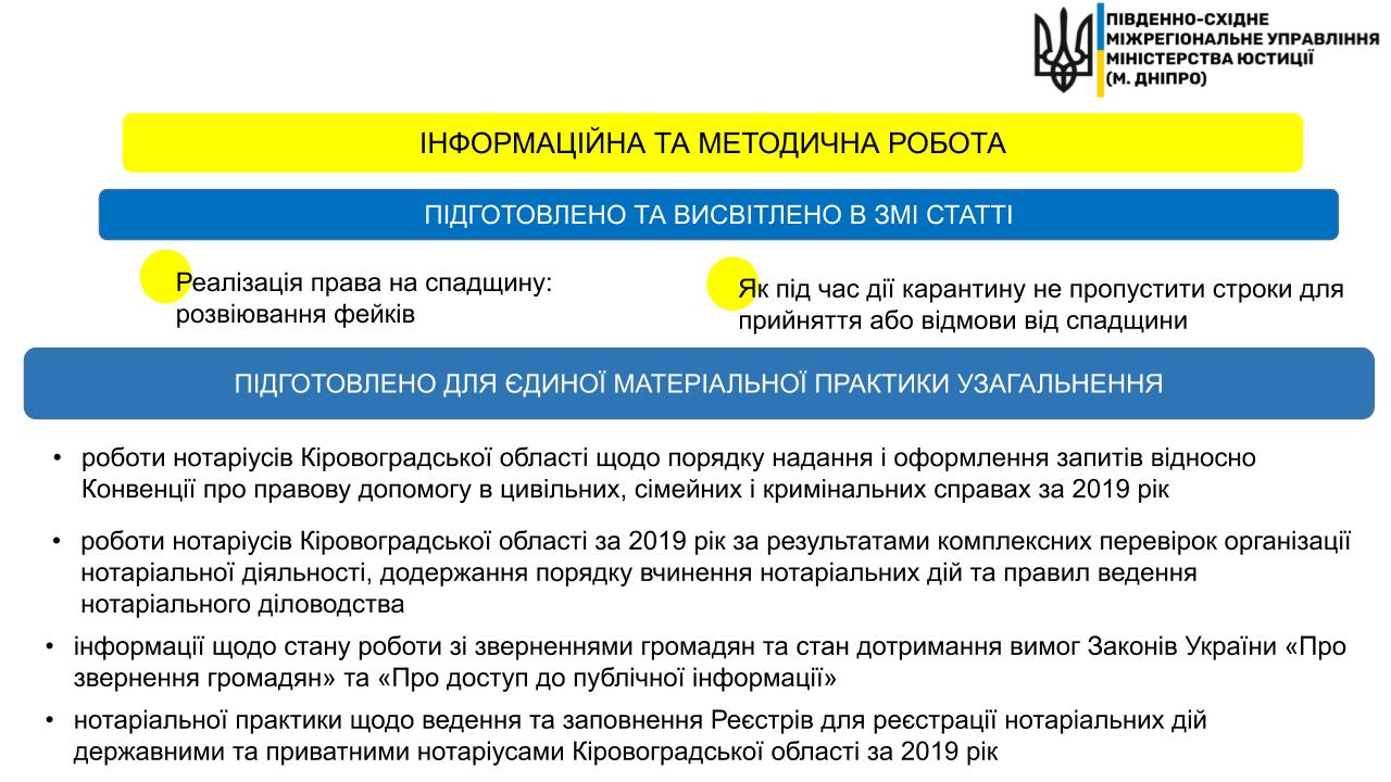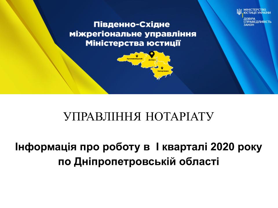 ?Основні досягнення в роботі за І квартал 2020 року з напрямку ?Управління нотаріату Південно-Східного міжрегіонального управління Міністерства юстиції (м. Дніпро)