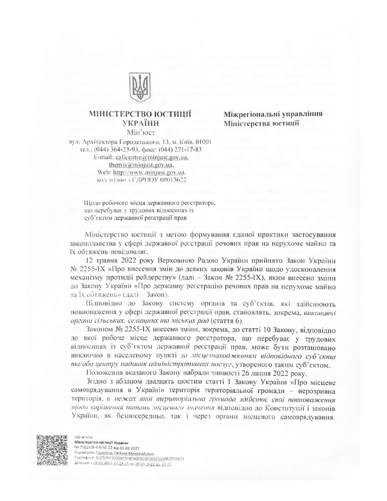 ? Детальніше у Листі Міністерства юстиції України Листі Міністерства юстиції України № 75026/8.4.4/32-22 від 01.09.2022