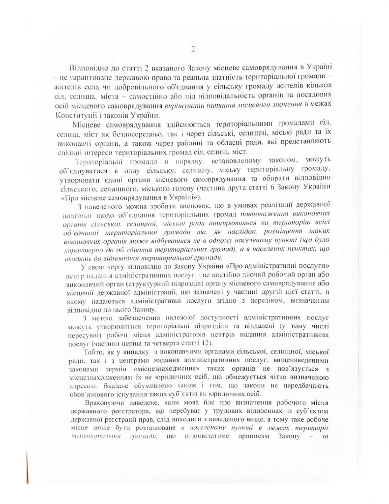 Так, вищезазначеним Законом внесено зміни, зокрема, до статті 10 Закону України «Про державну реєстрацію речових прав на нерухоме майно та їх обтяження», відповідно до якої робоче місце державного реєстратора, що перебуває у трудових відносинах із суб’єктом державної реєстрації прав, може бути розташовано ❗виключно в населеному пункті за місцезнаходженням відповідного суб’єкта та/або центру надання адміністративних послуг, утвореного таким суб’єктом.