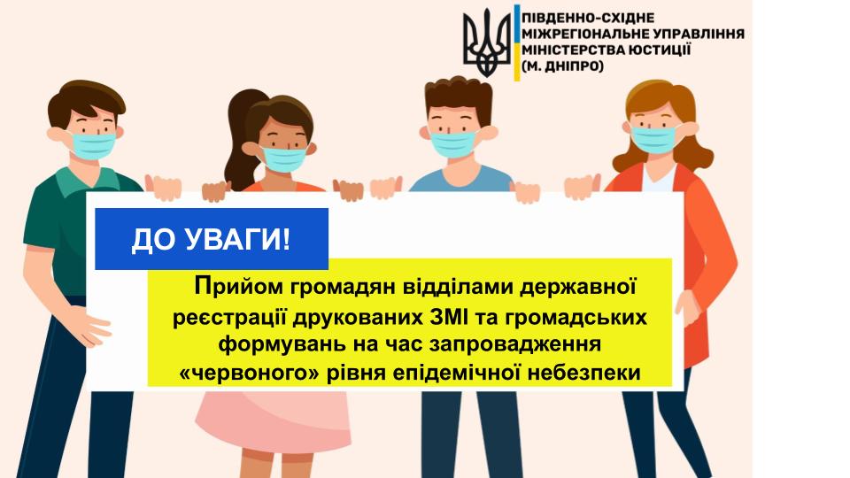 ?До уваги! Прийом громадян відділами державної реєстрації друкованих ЗМІ та громадських формувань на час запровадження «червоного» рівня епідемічної небезпеки