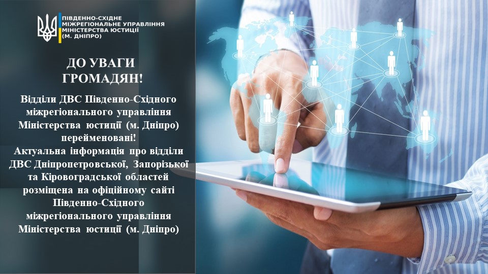 ❗️Відділи ДВС Південно-Східного міжрегіонального управління Міністерства юстиції (м. Дніпро) перейменовані!
