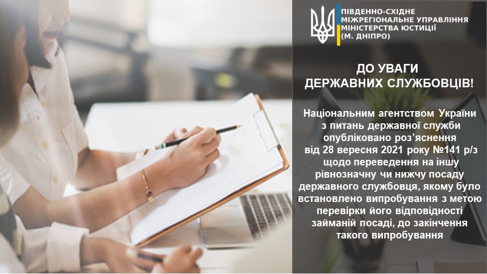 ? Національним агентством України з питань державної служби опубліковано ? роз`яснення від 28 вересня 2021 року № 141-р/з щодо переведення на іншу рівнозначну чи нижчу посаду державного службовця, якому було встановлено випробування з метою перевірки його відповідності займаній посаді, до закінчення такого випробування ➡️ Роз’яснення НАДС від 28.09.2021 №141-р/з
