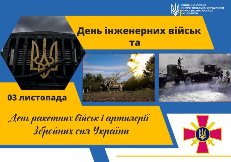 Військовослужбовці України сьгодні мають подвійне свято – День інженерних військ та День ракетних військ і артилерії. Вітаємо з професійним святом всіх, хто знаходяться “на передньому краї”, всіх, хто готує прохід на замінованих ділянках, розчищає завали, розміновує території, знищує ворога. Це сапери, артилеристи, сапери-розвідники, мінометники, кінологи, військові інженери тощо. Бажаємо вам сили та впевненості у власних силах, великої вдачі. Нехай Господь охороняє вас. Дякуємо та Віримо в ЗСУ! Все буде Україна!??