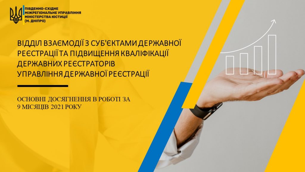 ✅ До Вашої уваги основні досягнення в роботі Відділу взаємодії з суб`єктами державної реєстрації та підвищення кваліфікації державних реєстраторів Управління державної реєстрації за 9 місяців 2021 року ⤵️