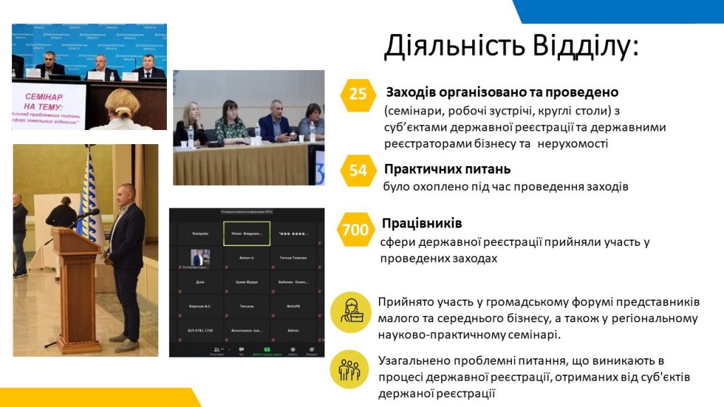 Основні досягнення в роботі Відділу взаємодії з суб`єктами державної реєстрації та підвищення кваліфікації державних реєстраторів