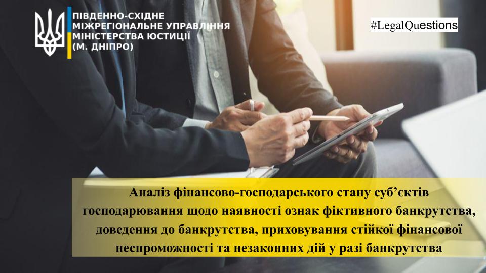 #LegalQuestions: Аналіз фінансово-господарського стану суб’єктів господарювання щодо наявності ознак фіктивного банкрутства, доведення до банкрутства, приховування стійкої фінансової неспроможності та незаконних дій у разі банкрутства