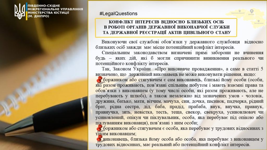 #LegalQuestions: Конфлікт інтересів відносно близьких осіб в роботі органів державної виконавчої служби та державної реєстрації актів цивільного стану