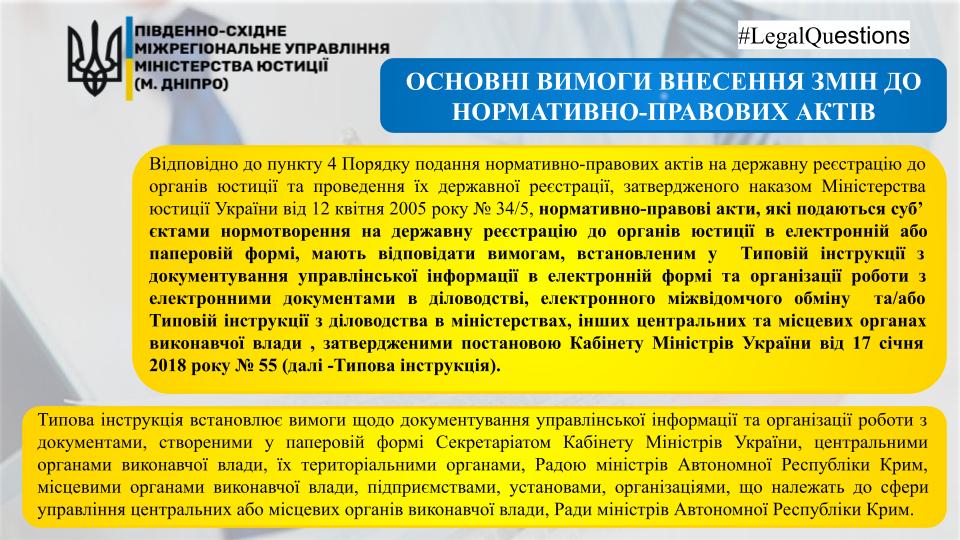 ?Сьогодні ? у рубриці #LegalQuestions розкриємо питання щодо ➡️ основних вимог внесення змін до нормативно — правових актів ⤵️
