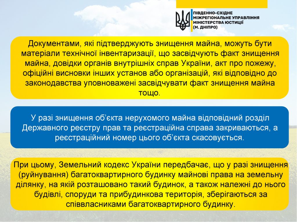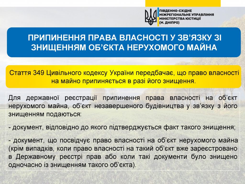 ?Сьогодні в рубриці #LegalQuestions роз’яснюємо ? питання щодо припинення права власності у зв’язку зі знищенням об’єкта нерухомого майна ⬇️