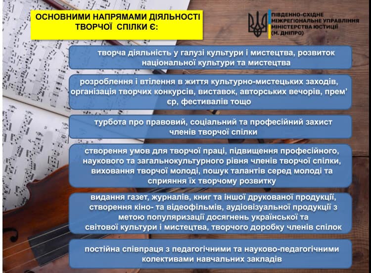А сьогодні ми продовжуємо тематику творчих спілок, і до вашої уваги інфо матеріали про принципи та основні напрями їх діяльності.?