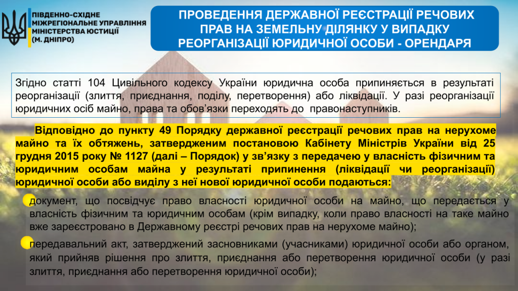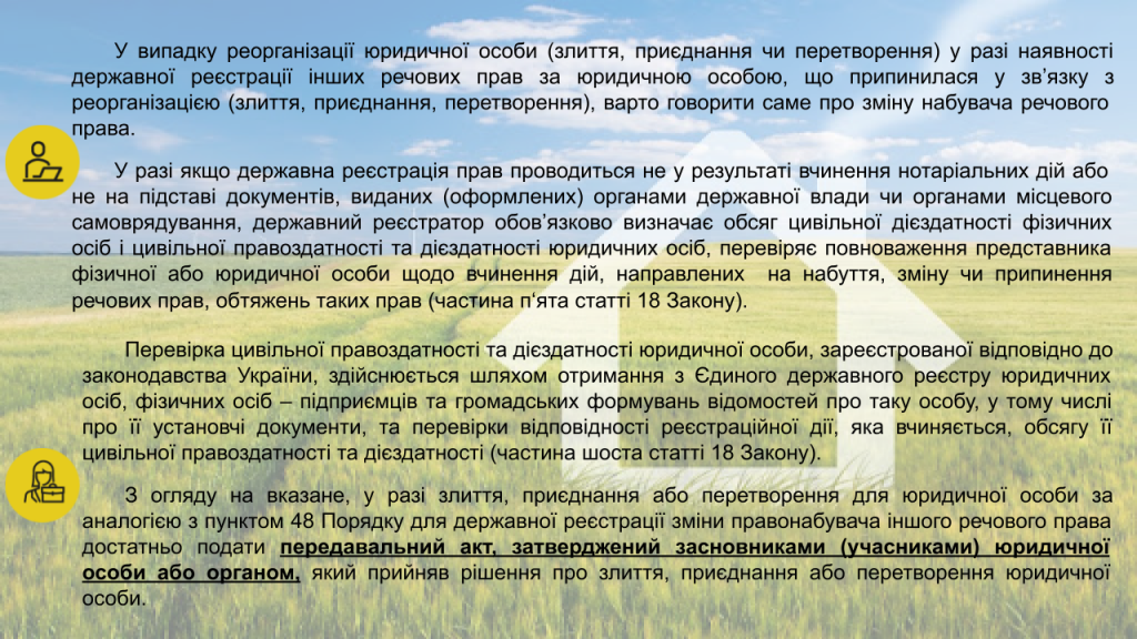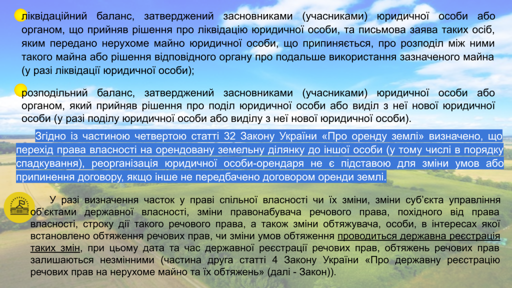 #LegalQuestions: проведення державної реєстрації речових прав на земельні ділянки у випадку реорганізації юридичної особи – орендаря