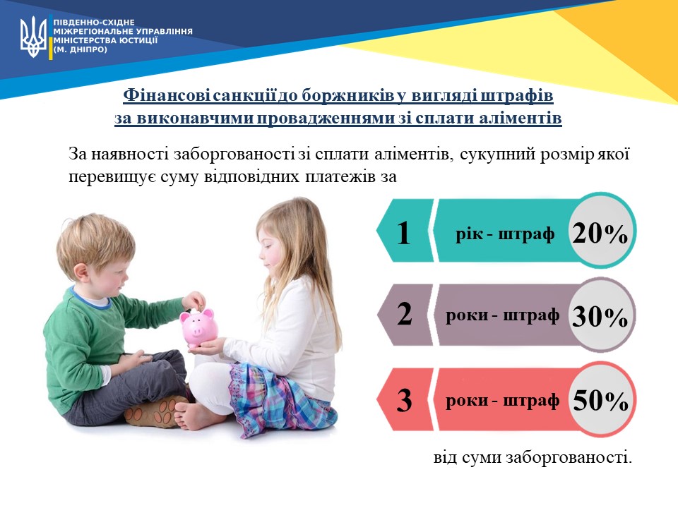 ❗️ Адже, з початку 2021 року державними виконавцями Дніпропетровської області за постановами про накладання штрафів стягнуто 2,9 млн грн на користь стягувачів. А всього — 722,3 млн грн заборгованості зі сплати аліментів на користь 39 942 дитини.